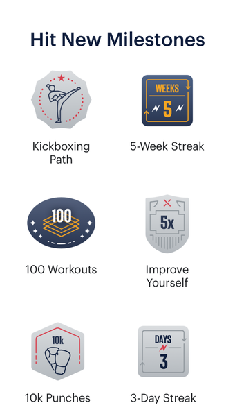 Dzięki setkom ćwiczeń bokserskich i kickbokserskich oraz setkom różnych stylów, poprawisz swoją siłę, kondycję, wytrzymałość i wiele więcej. Każde treningi mają cel, więc otrzymujesz natychmiastową wizualną informację o tym, jak bardzo musisz się wysilić. Dzięki temu możesz dokładnie zobaczyć, ile postępu robisz w danym obszarze siły.